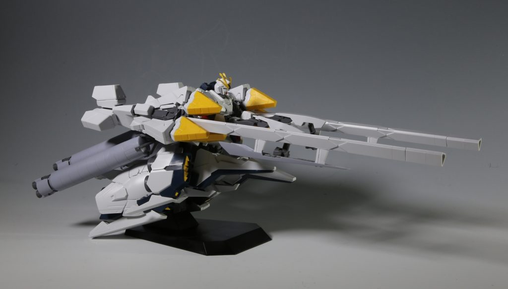 全体としては大型キットにもかかわらず、パーツ剛性も高くスタンドもしっかりしているため、飾っていてたわんだり、何となくダラーとならなずにカッチリしているのは「ほほう」となりました。ナラティブ本体との合体(?)も無理なく出来て合体変形ものでありがちな、一度変形させたら二度と戻す気力がなくなるといったことはありませんでした。