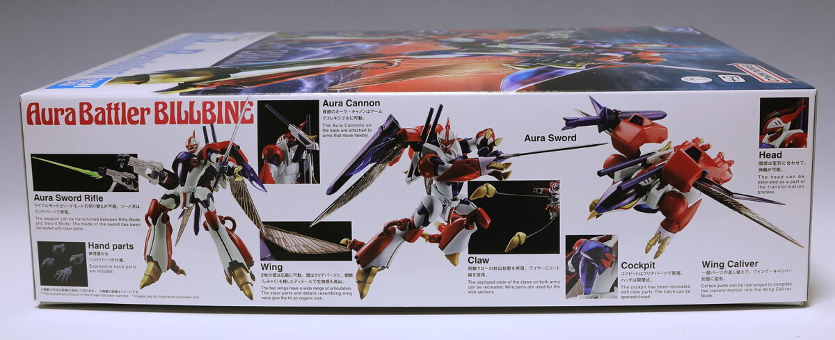 ウイング・キャリバーへの変形も可能になっています。また、オーラ・ソード、オーラ・ソード・ライフルといった装備も当然ながら付属しております。