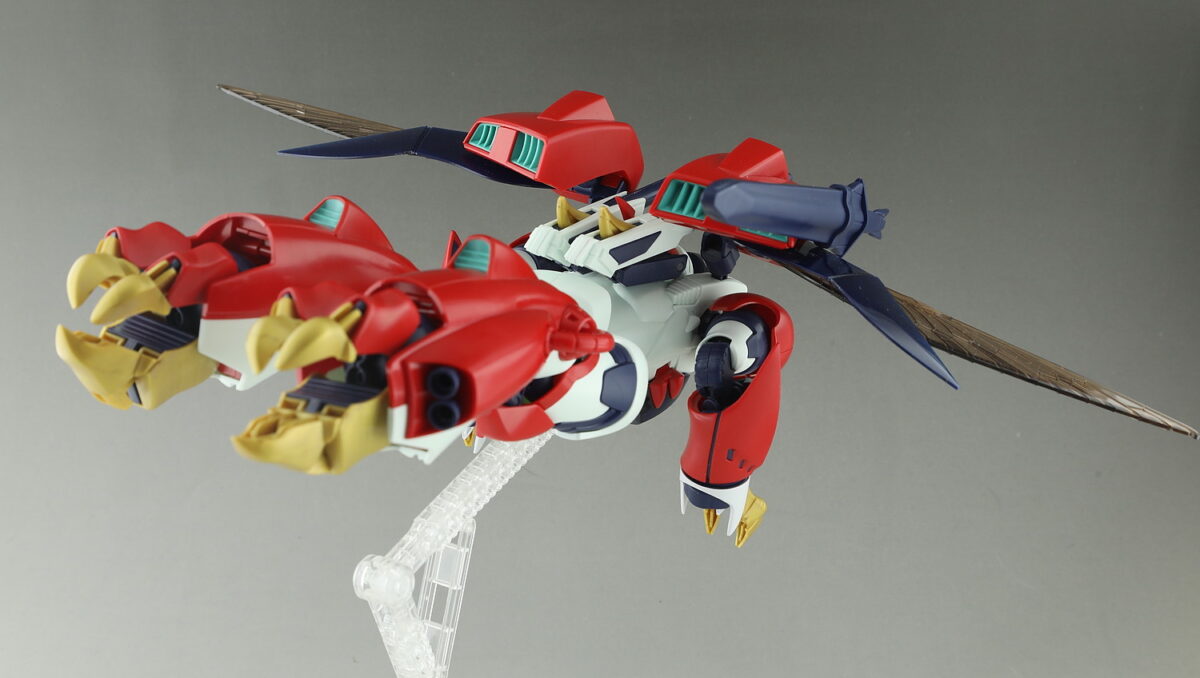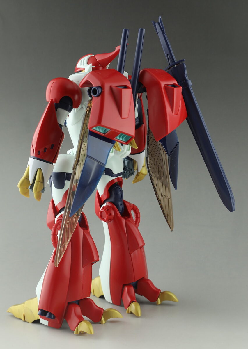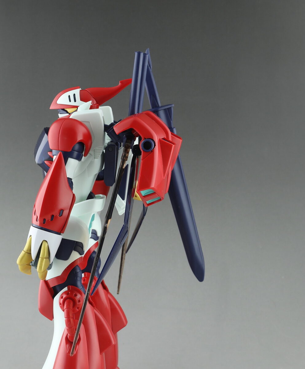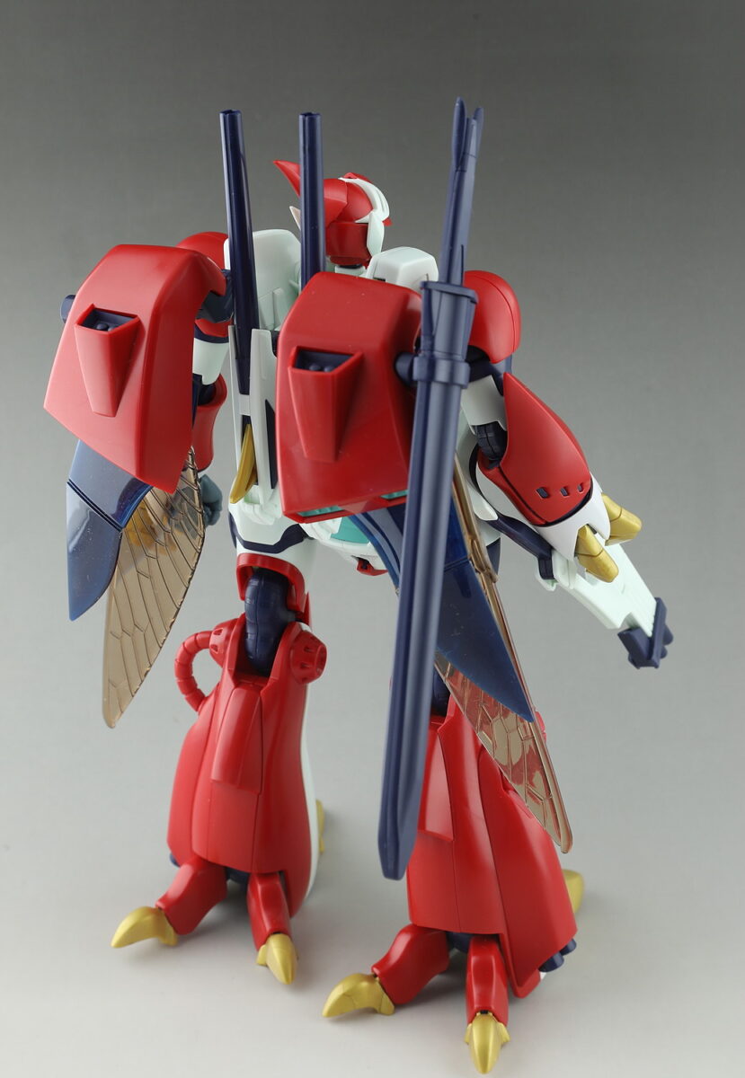 HGダンバインで採用されていたコックピットハッチの「ハーフミラーメッキ」や、パール入りの集光樹脂を使用した翅などの技術は採用されておらず、せっかくの大スケールが活かされていないのではといった疑問も残りました。