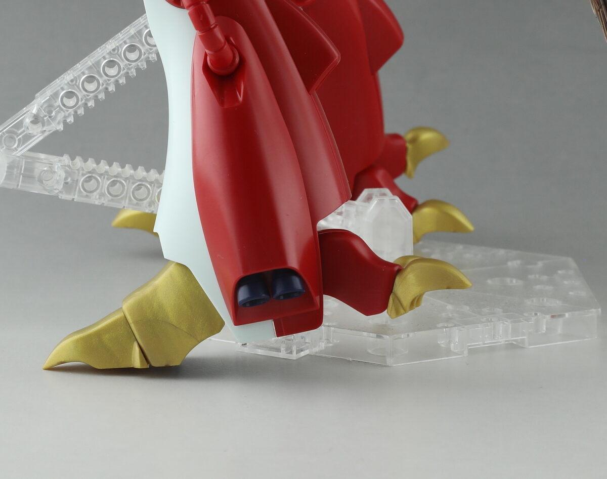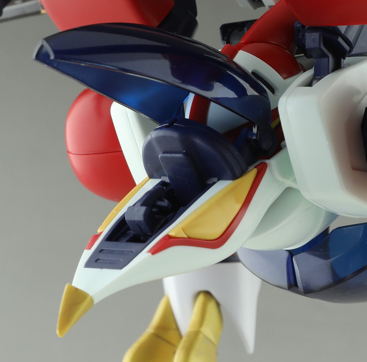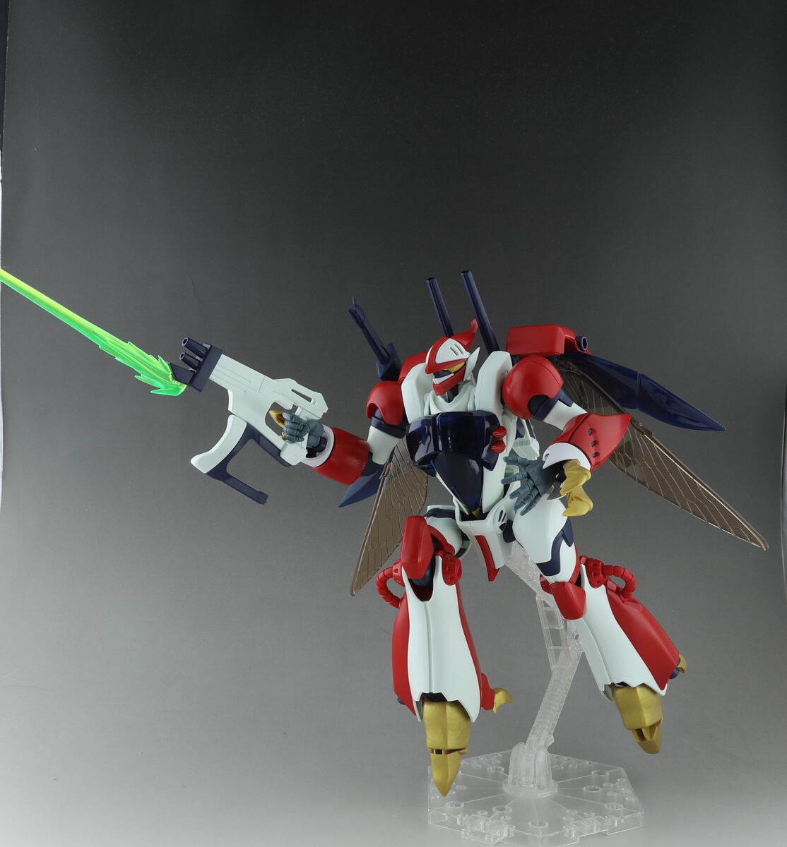 HGダンバインで採用されていたコックピットハッチの「ハーフミラーメッキ」や、パール入りの集光樹脂を使用した翅などの技術は採用されておらず、せっかくの大スケールが活かされていないのではといった疑問も残りました。