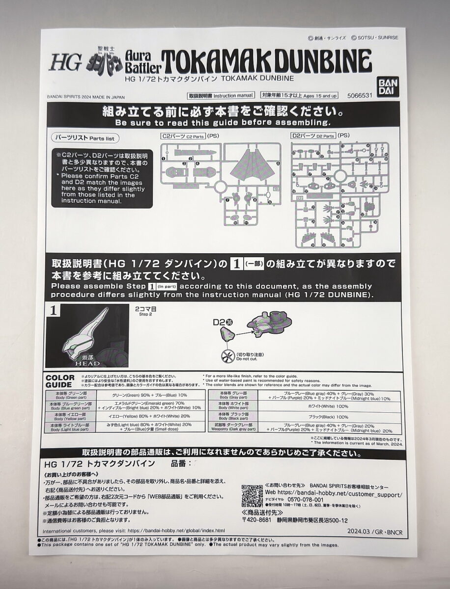 また、表記も全て「HG 1/72 ダンバイン」となっているのは変更ありません。ただ、カラーパターンが変更になっている口のパーツがC2→D2に変更になっています。