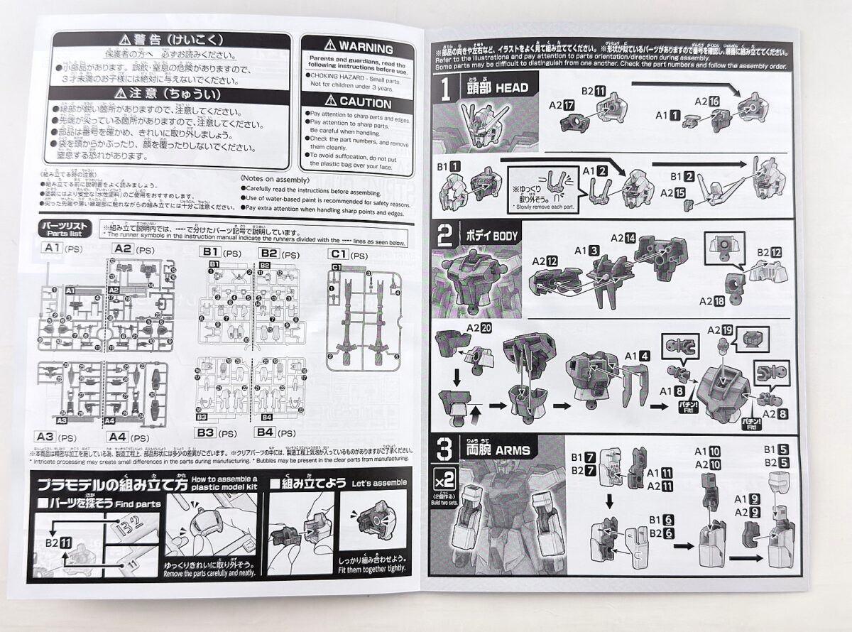 素材は全てPS素材、表記は「EG 1/144 ストライクガンダム」となっておりますが、追加装備のバズーカのみ「EG ストライクガンダム ウェポン」表記となっています。