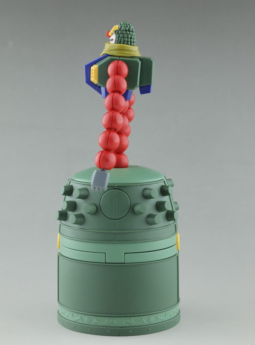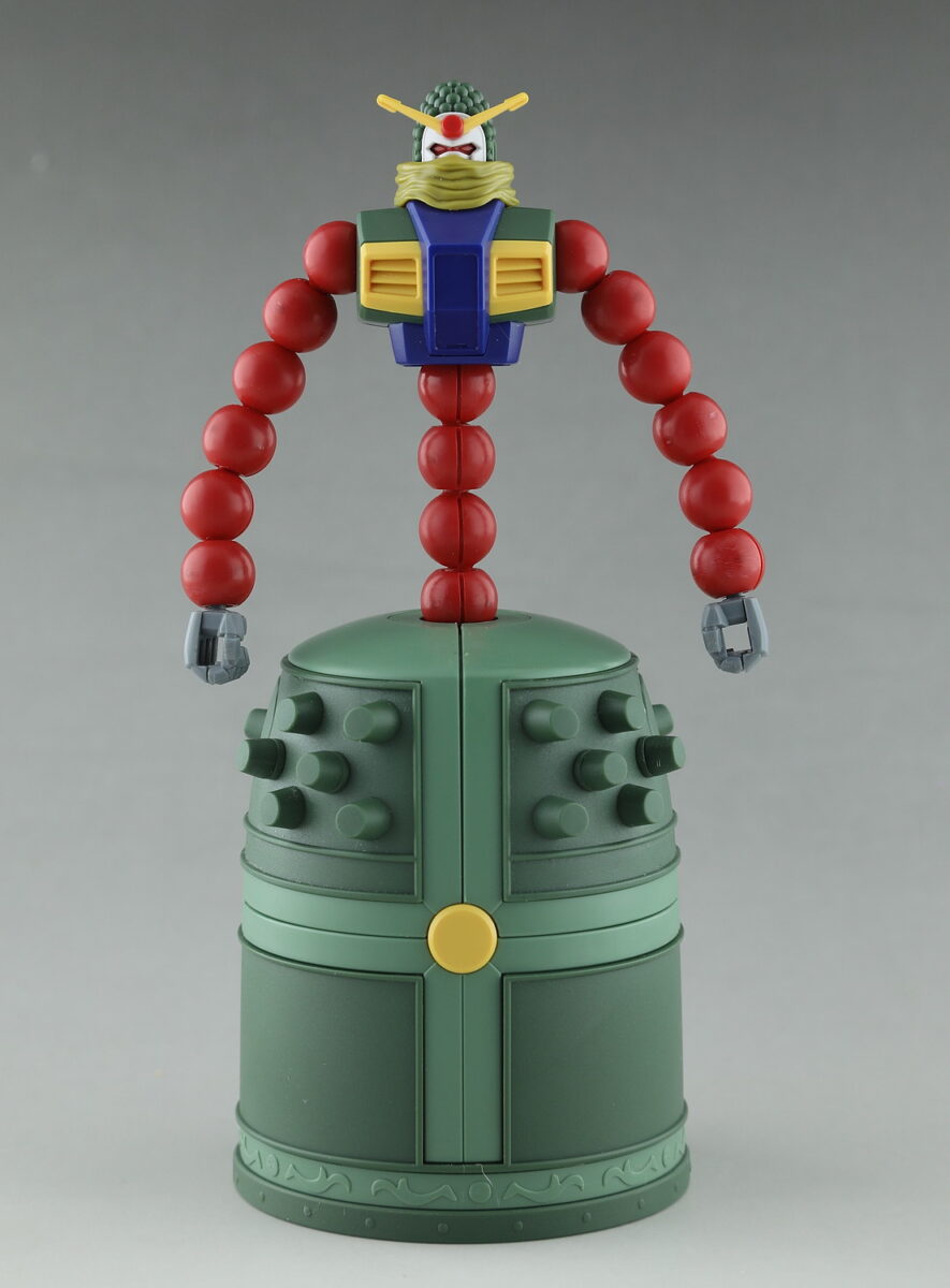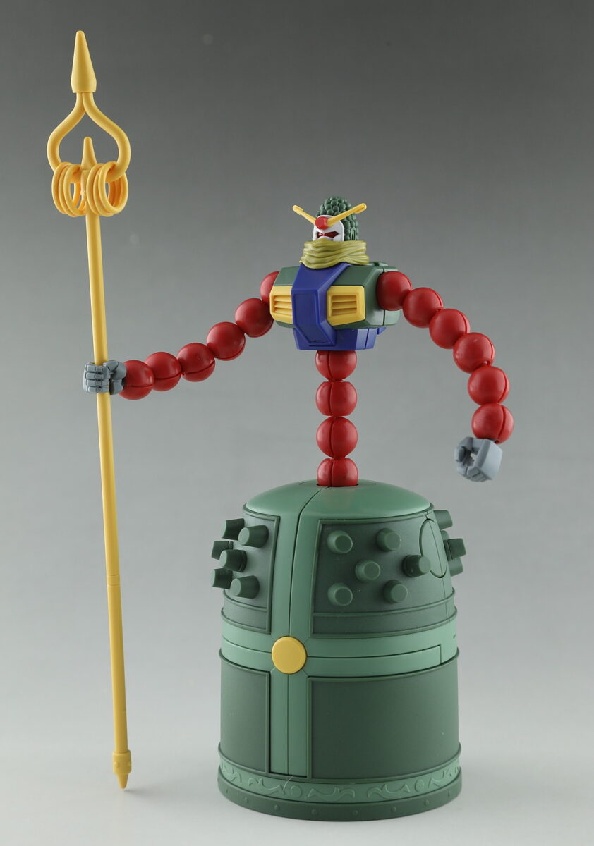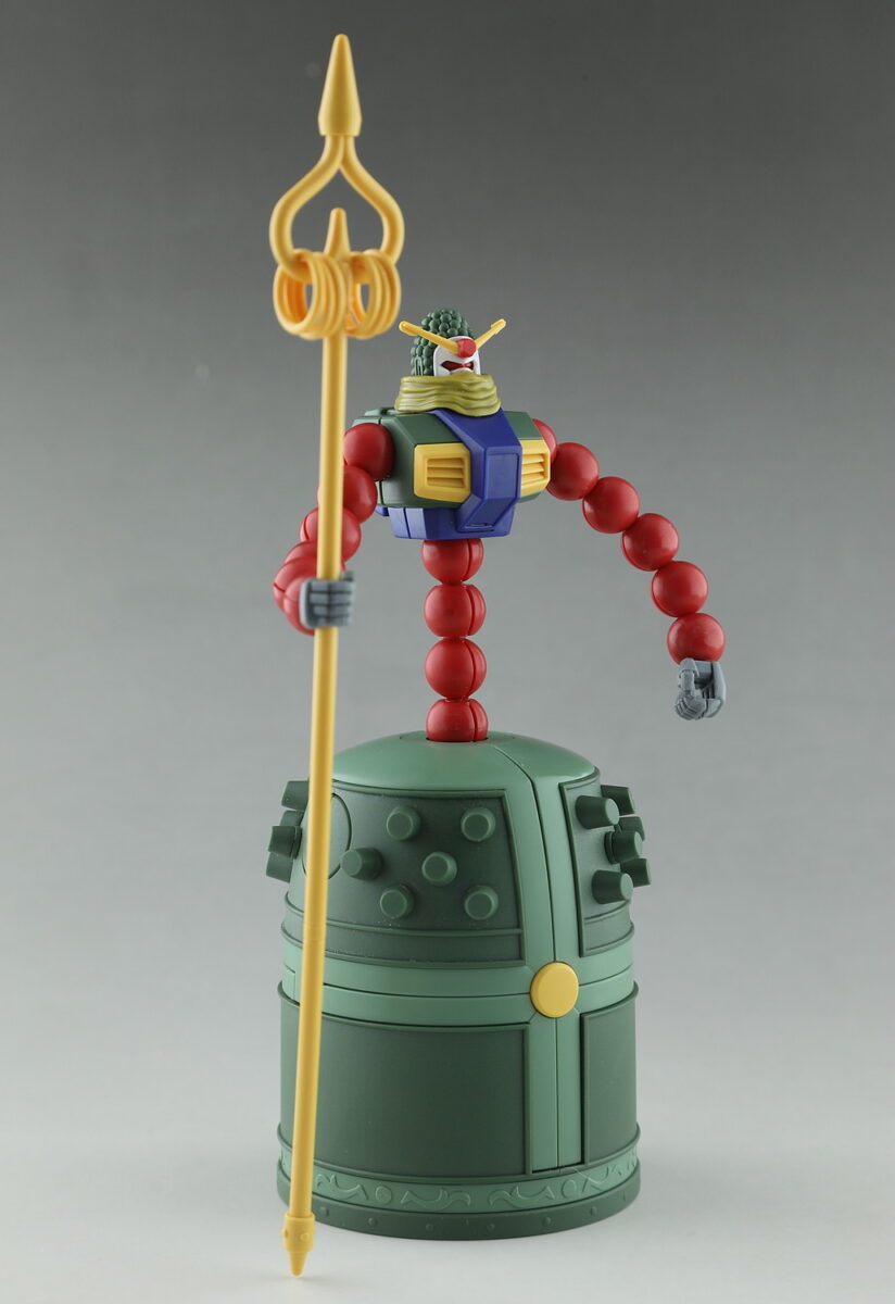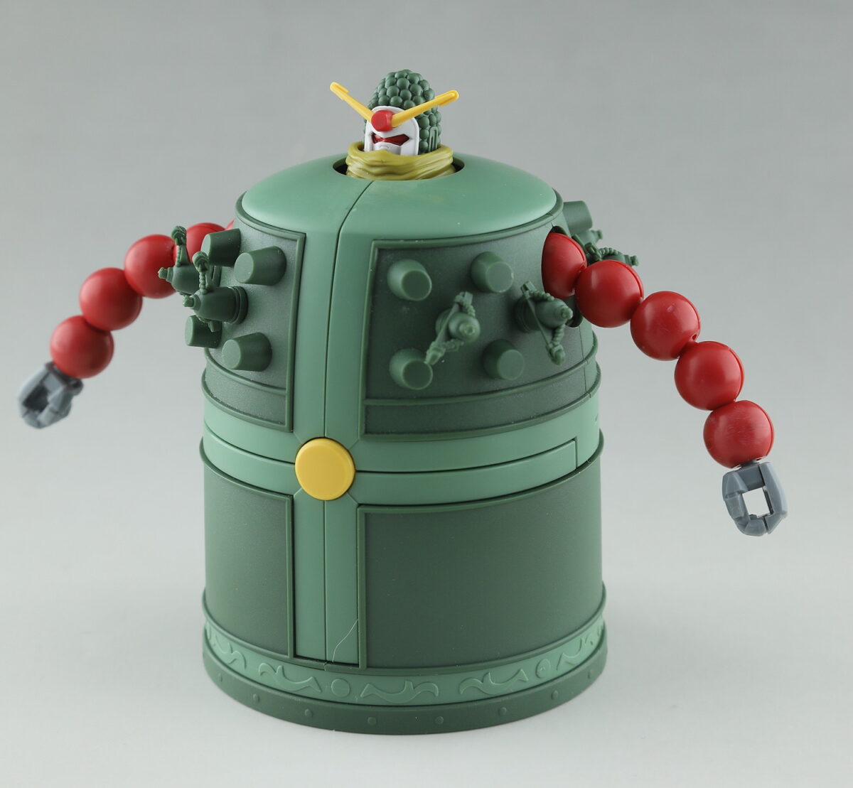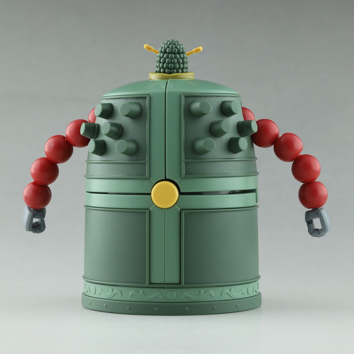 釣鐘部のフタや腕の通し穴もカッチリ閉まり、部品剛性の高さを感じることができます。また、頭部のブツブツ(螺髪)の造形も素晴らしく、ただの企画物ではないことを感じさせられます。