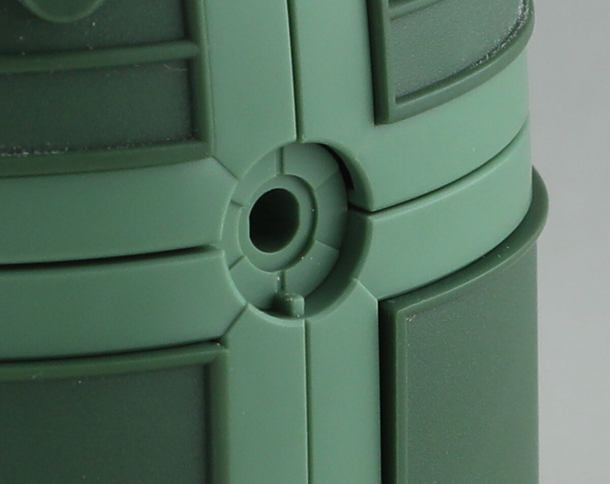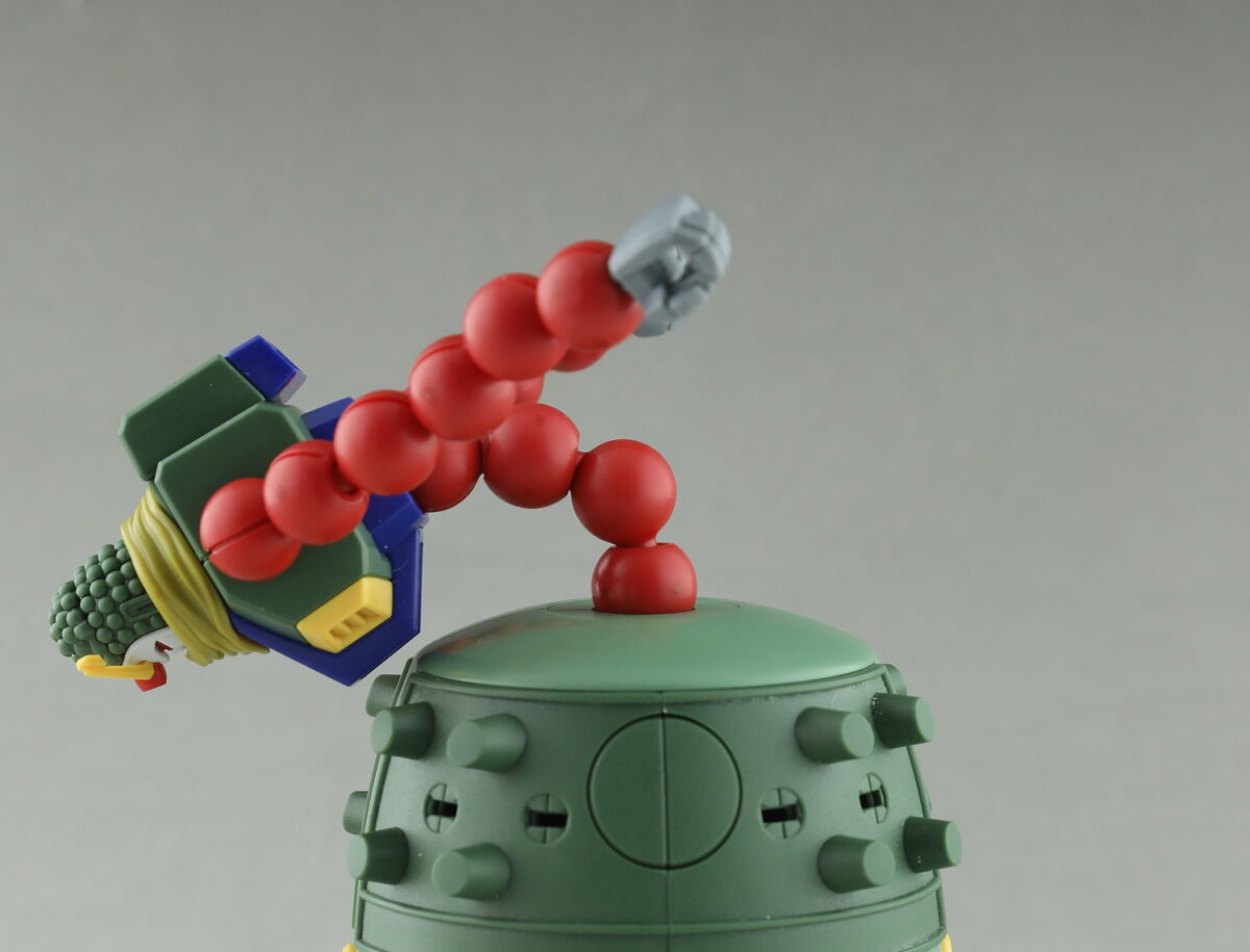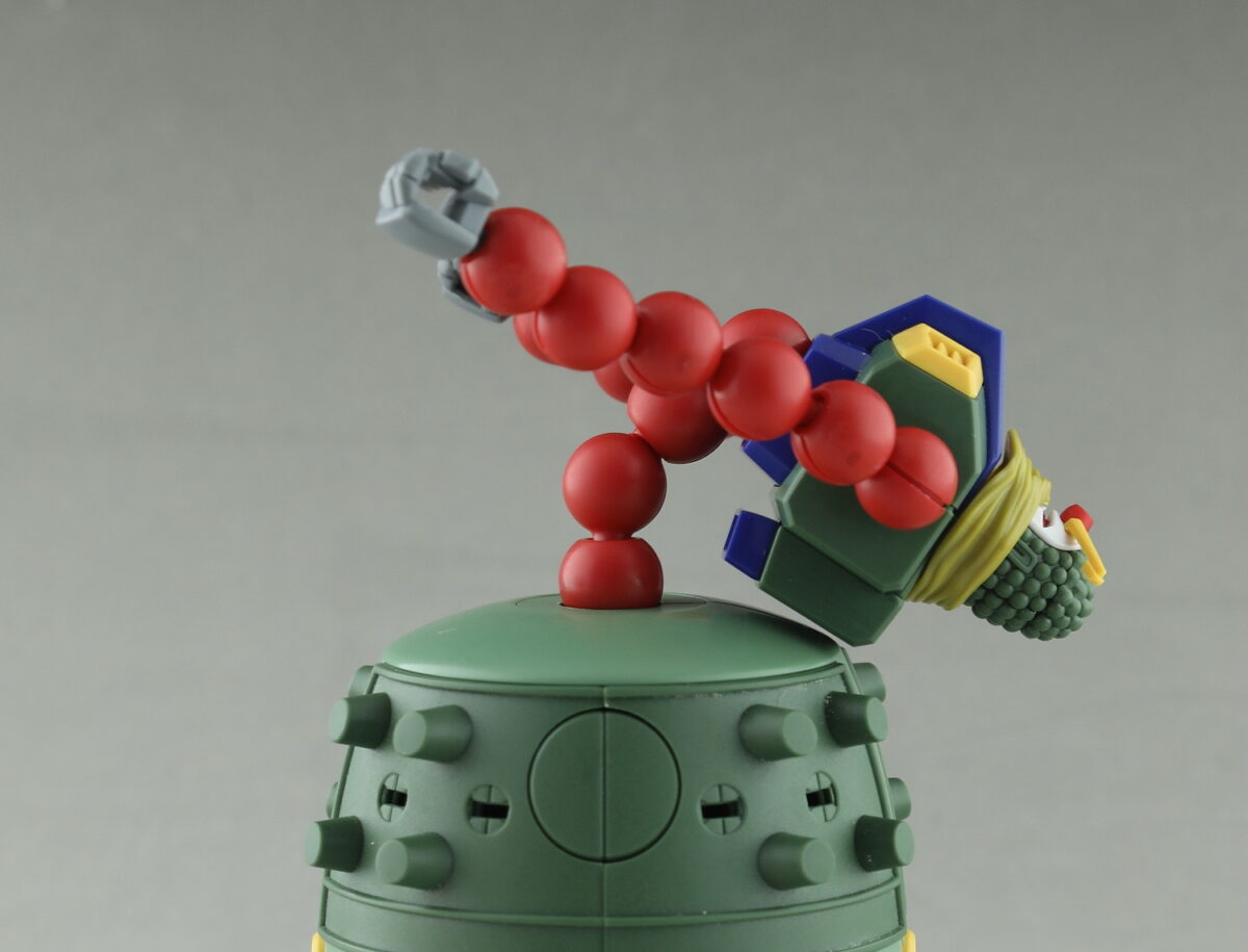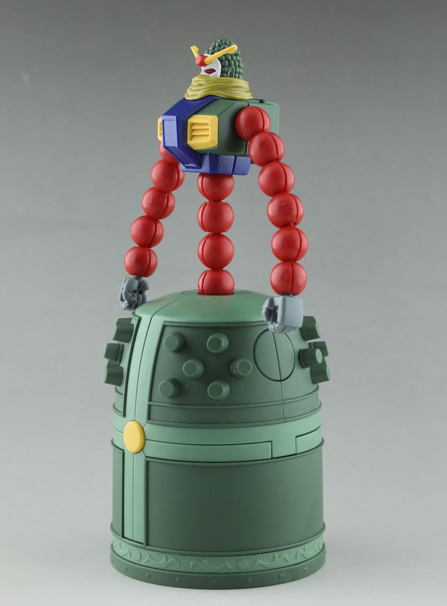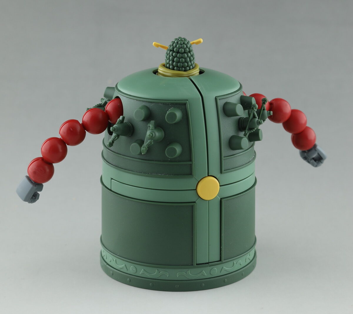 釣鐘部のフタや腕の通し穴もカッチリ閉まり、部品剛性の高さを感じることができます。また、頭部のブツブツ(螺髪)の造形も素晴らしく、ただの企画物ではないことを感じさせられます。