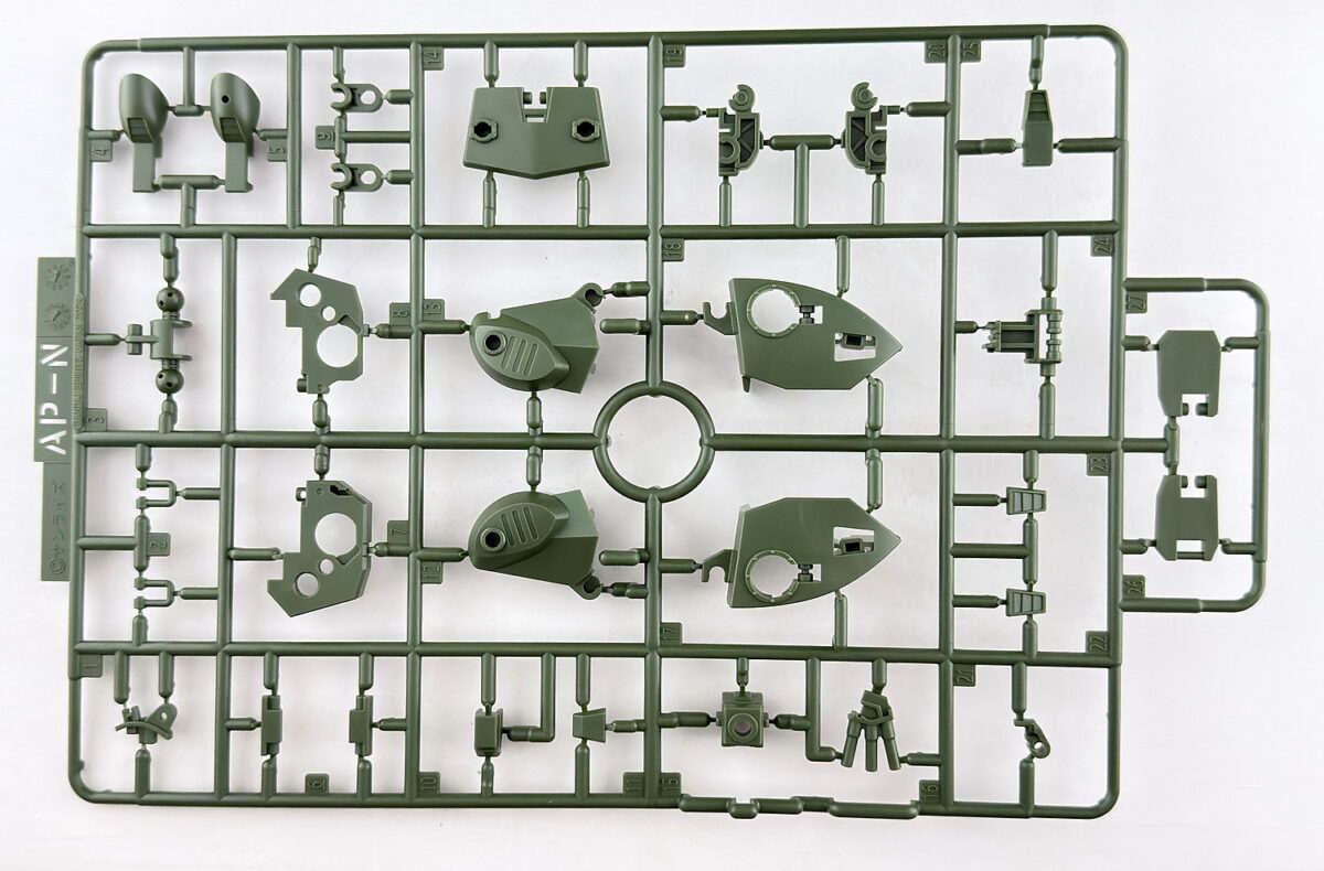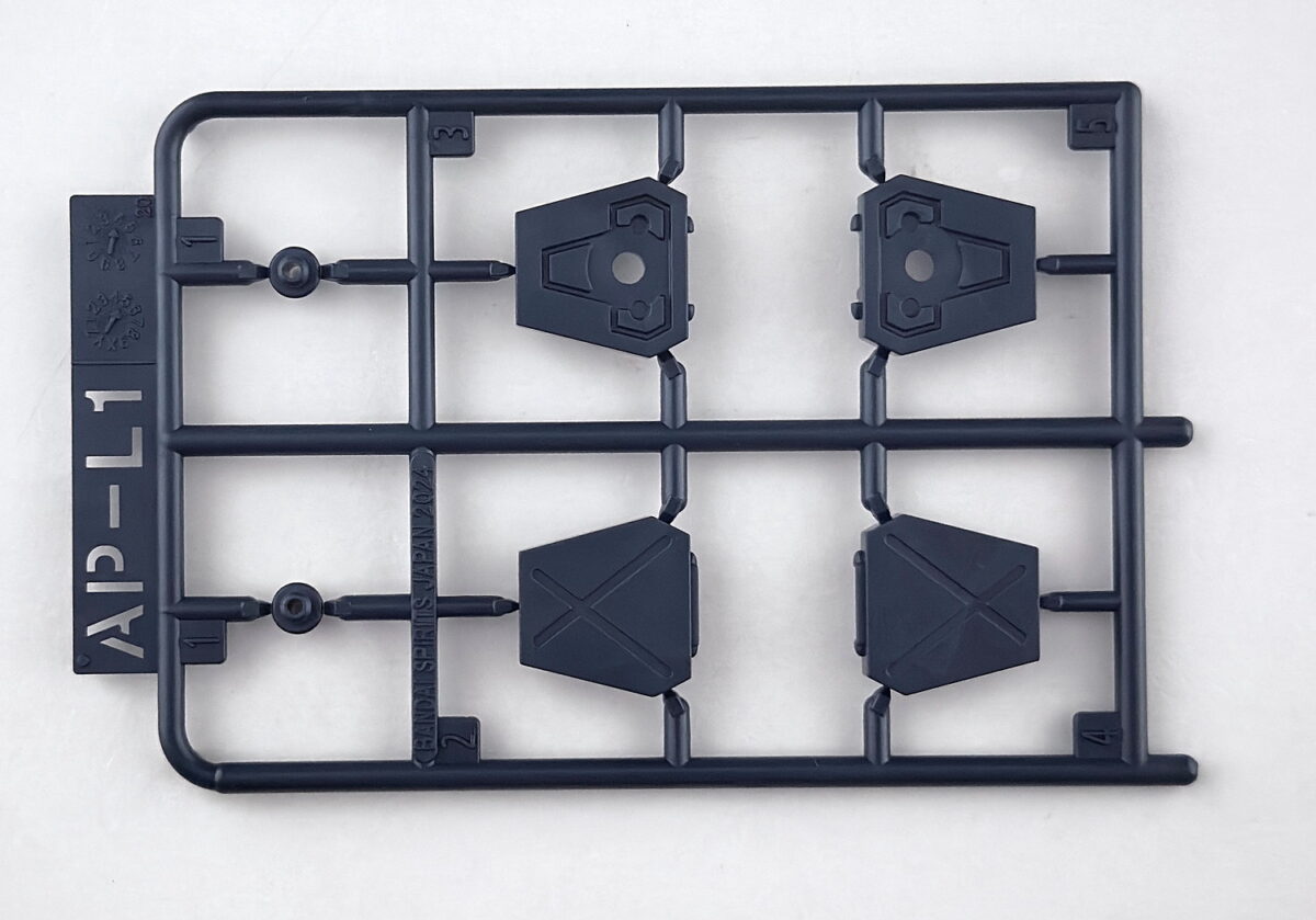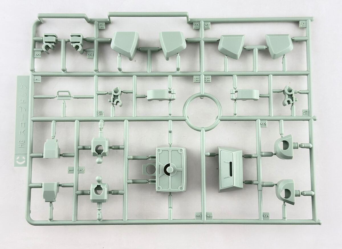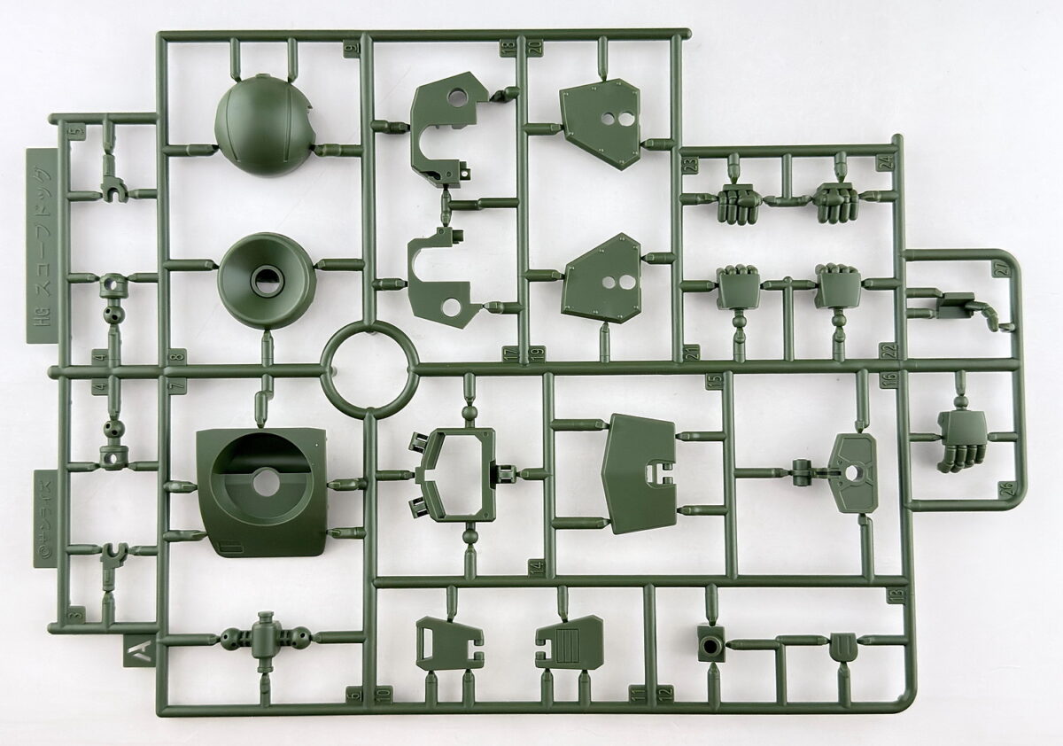 ランナーの素材は全てPS素材、表記は基本「HG スコープドック」ですが、拡張パーツ部分のAPから始まるパーツはランナー名表記がありません。