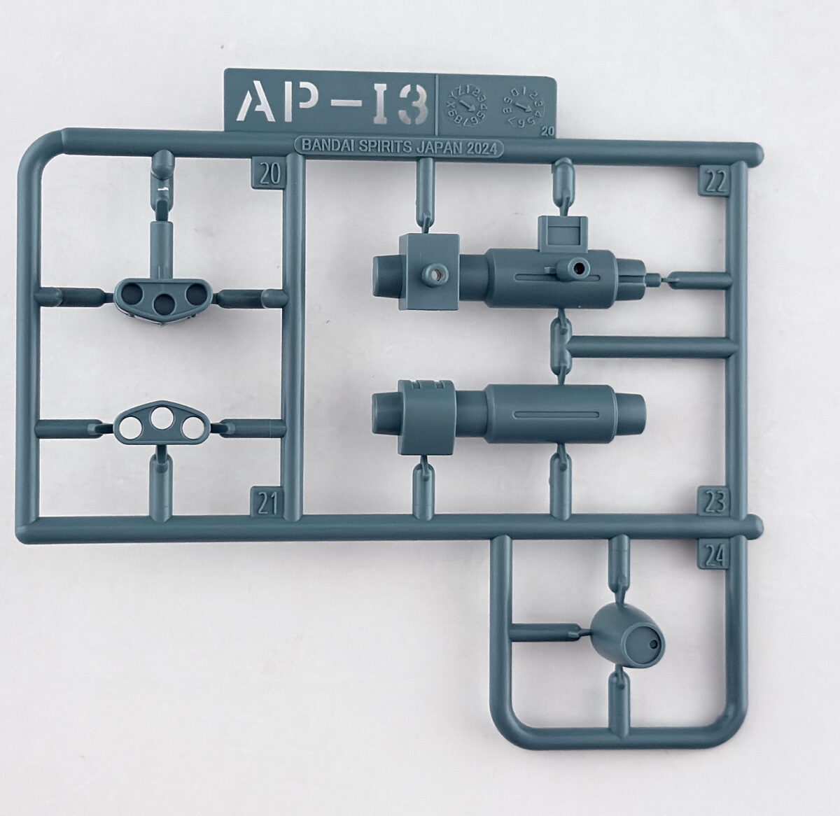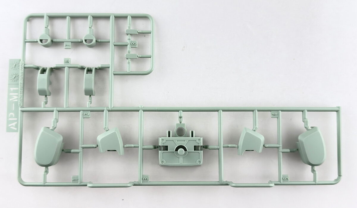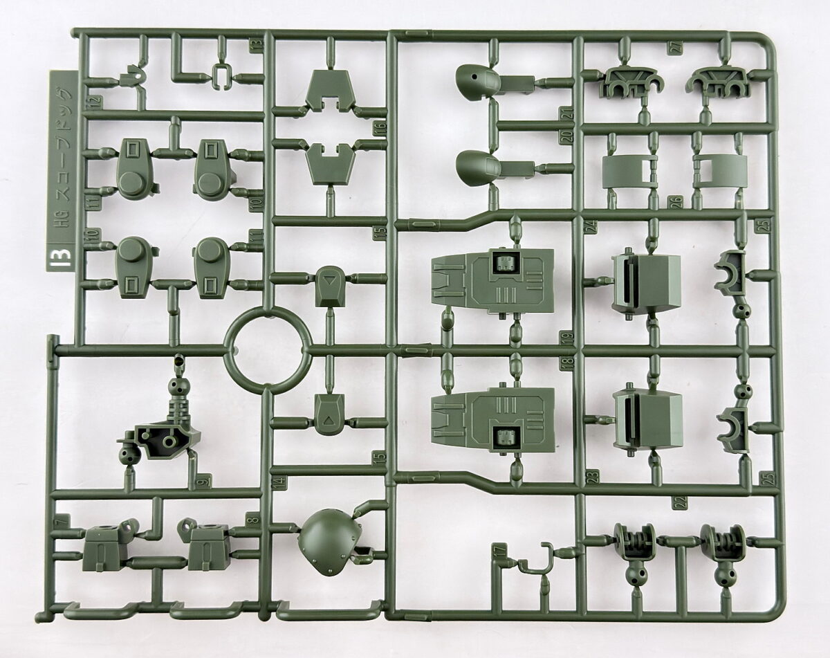 ランナーの素材は全てPS素材、表記は基本「HG スコープドック」ですが、拡張パーツ部分のAPから始まるパーツはランナー名表記がありません。