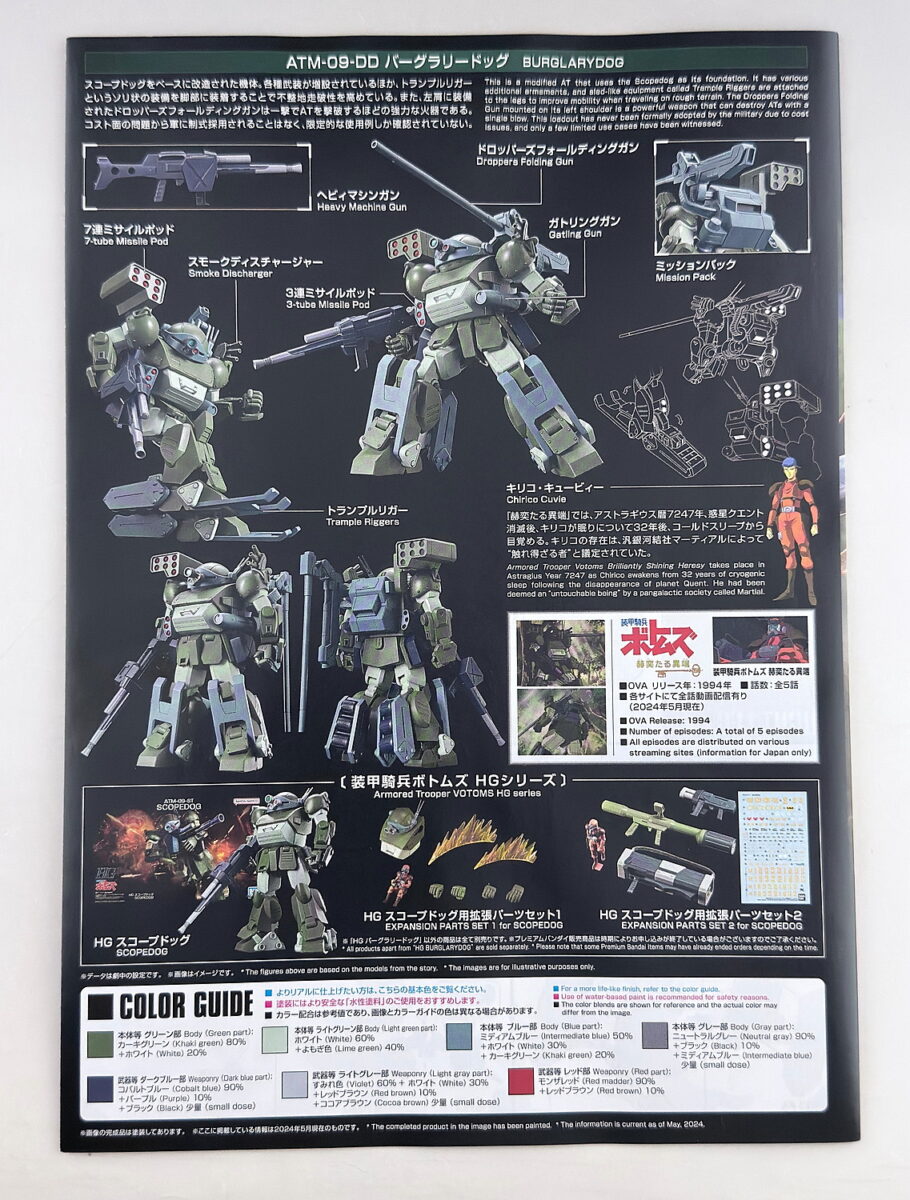 HG スコープドックにバーグラリードック専用のパーツを追加したキットでした。ただ、本体のスコープドック自体にも手が加えられており、地味なバージョンアップがうれしい内容となっていました。