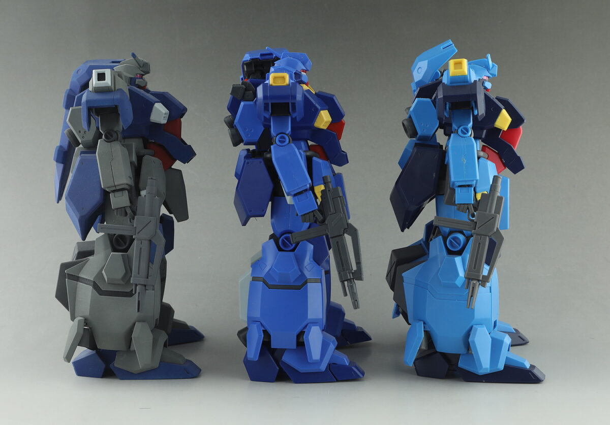 今回の比較で、本体形状だではなく、先のUC版・ギレン版の弱点であった脚部の付根の全面見直しをはじめ、あらゆるところに手が入っており、一部共有パーツはあるものの、ほぼ新規キットと言っても過言ではないことが確認できた印象です。
